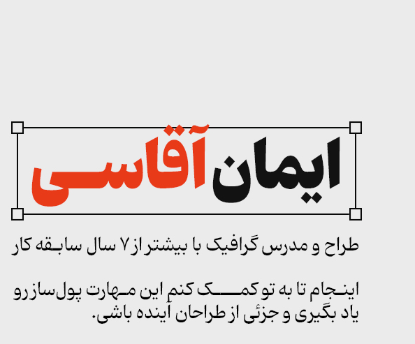 به عنوان کسی که اطلاعات خوبی از گرافیک داشتم بعد آموزش های آقای آقاسی متوجه شدم چقدر گرافیک متفاوته و من چه مواردی رو رعایت نمیکردم که رعایت کردنش تاثیر خیلی زیادی توی کارم داشت. الانم توی یک مجموعه بزرگ دیجیتال مارکتینگ کار میکنم و سطح کیفیت کارام خیلی بالاتر رفته.